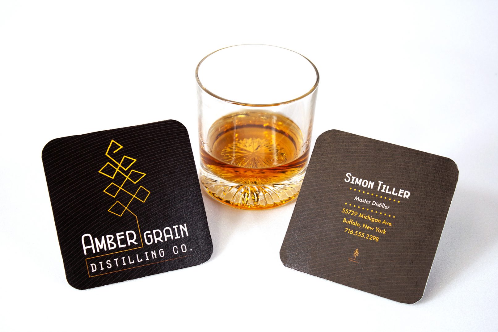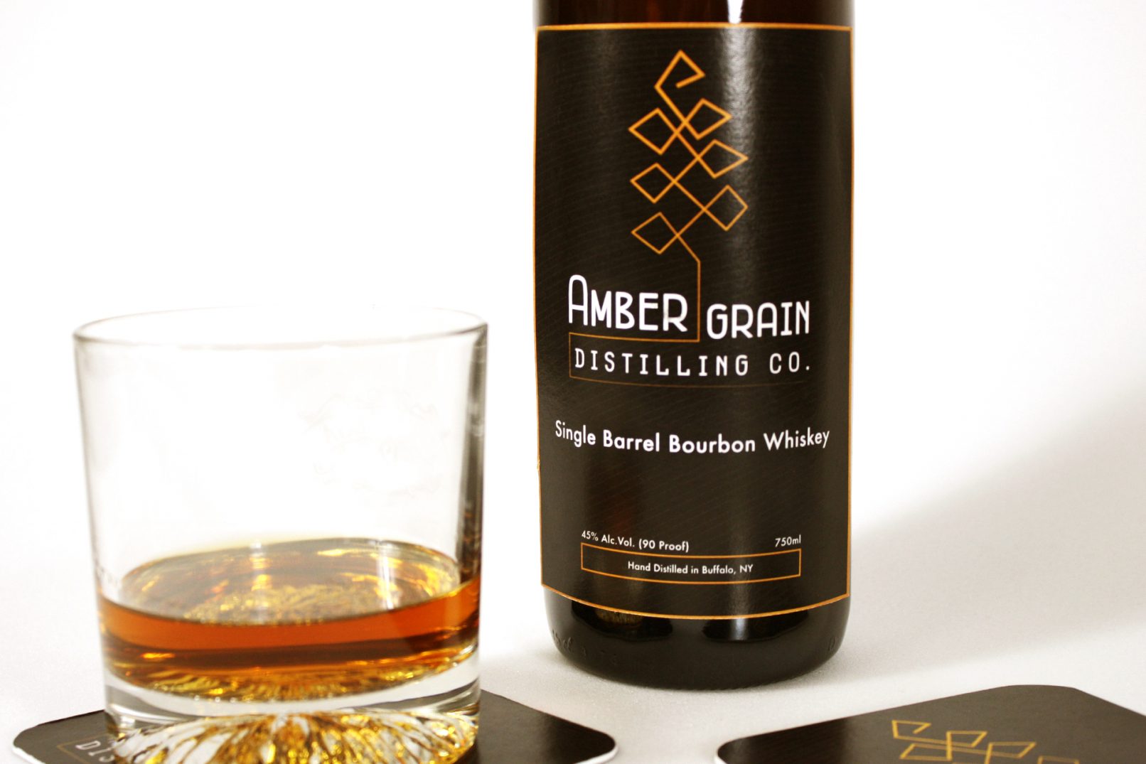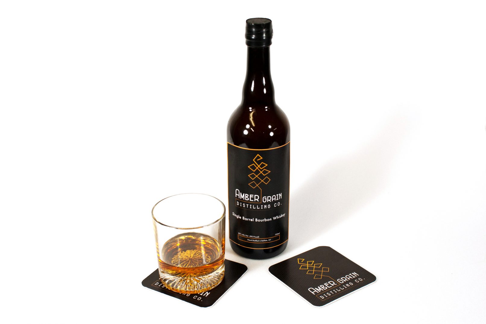 Branding, packaging design, and illustration for Ambergrain Distilling Co., located in Buffalo, New York. The branding material utilizes simple graphic elements and scratchboard-style illustrations and icons. All is paired together to project a lively, homegrown presence that reflects the company’s rust belt identity.